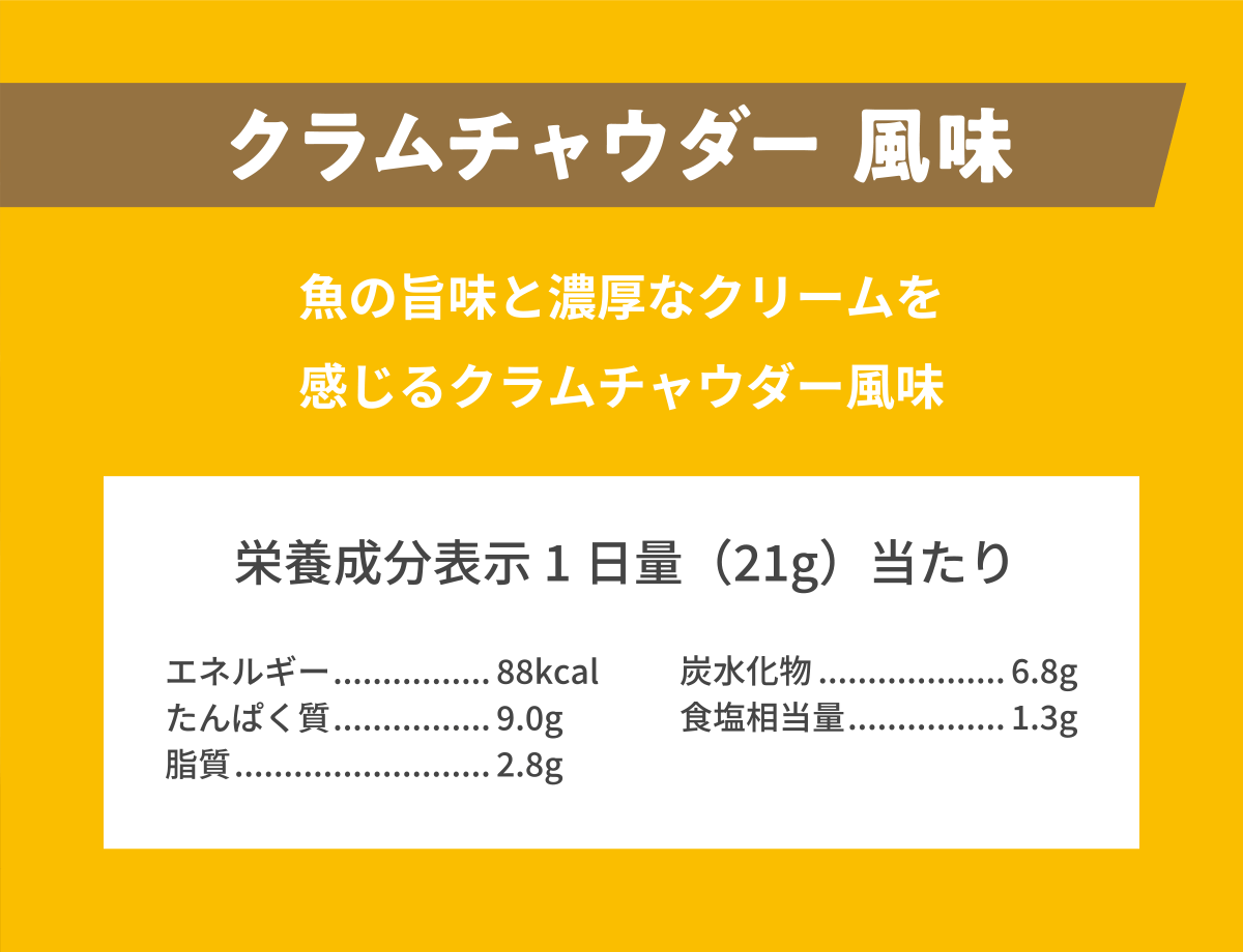 ※一食分21g (クラムチャウダー 風味) / 20g (トマトポタージュ風味) 当たり